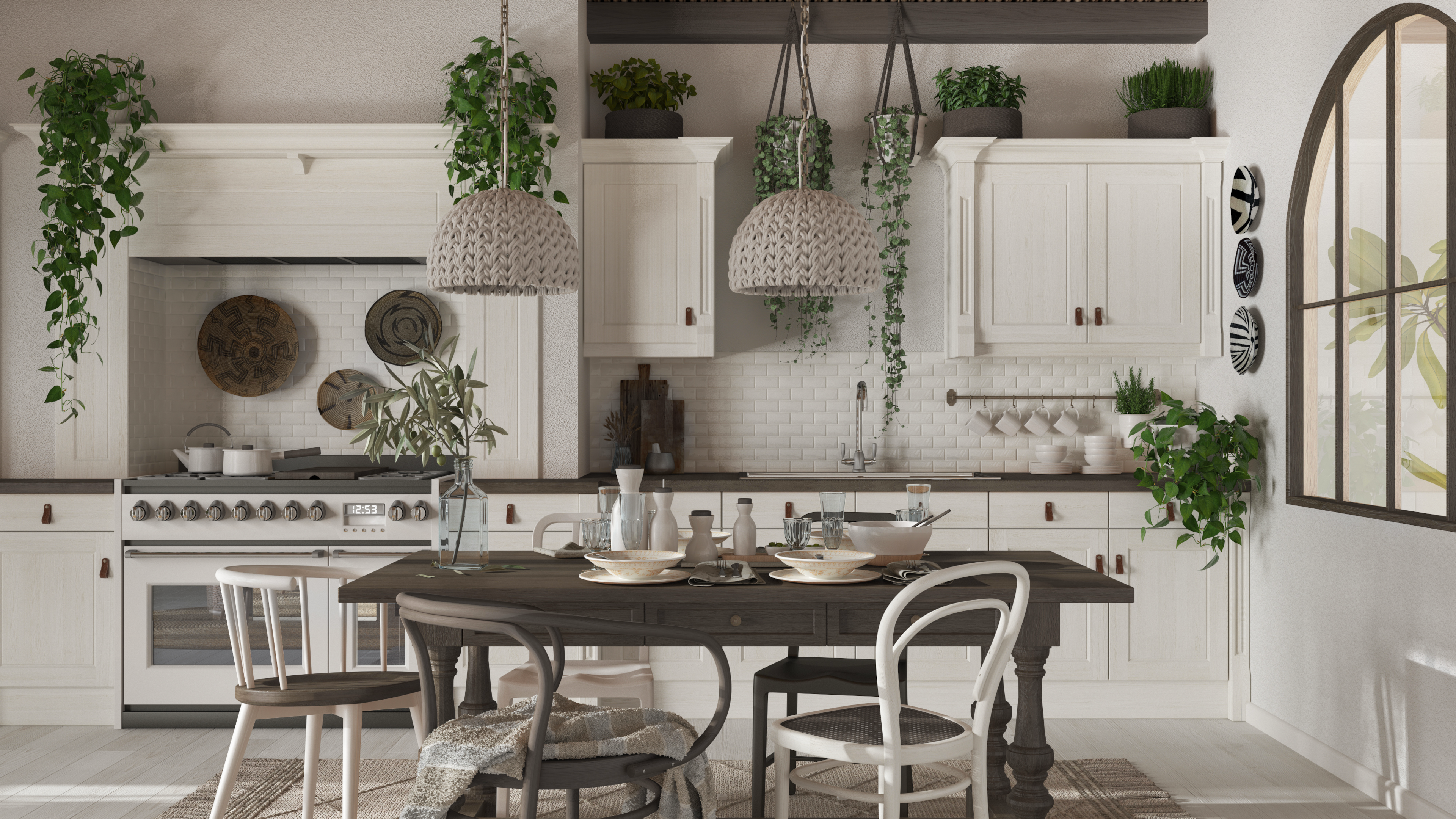 - Why it works: Split the difference between crisp white and deep hues, letting both timber and décor pop.